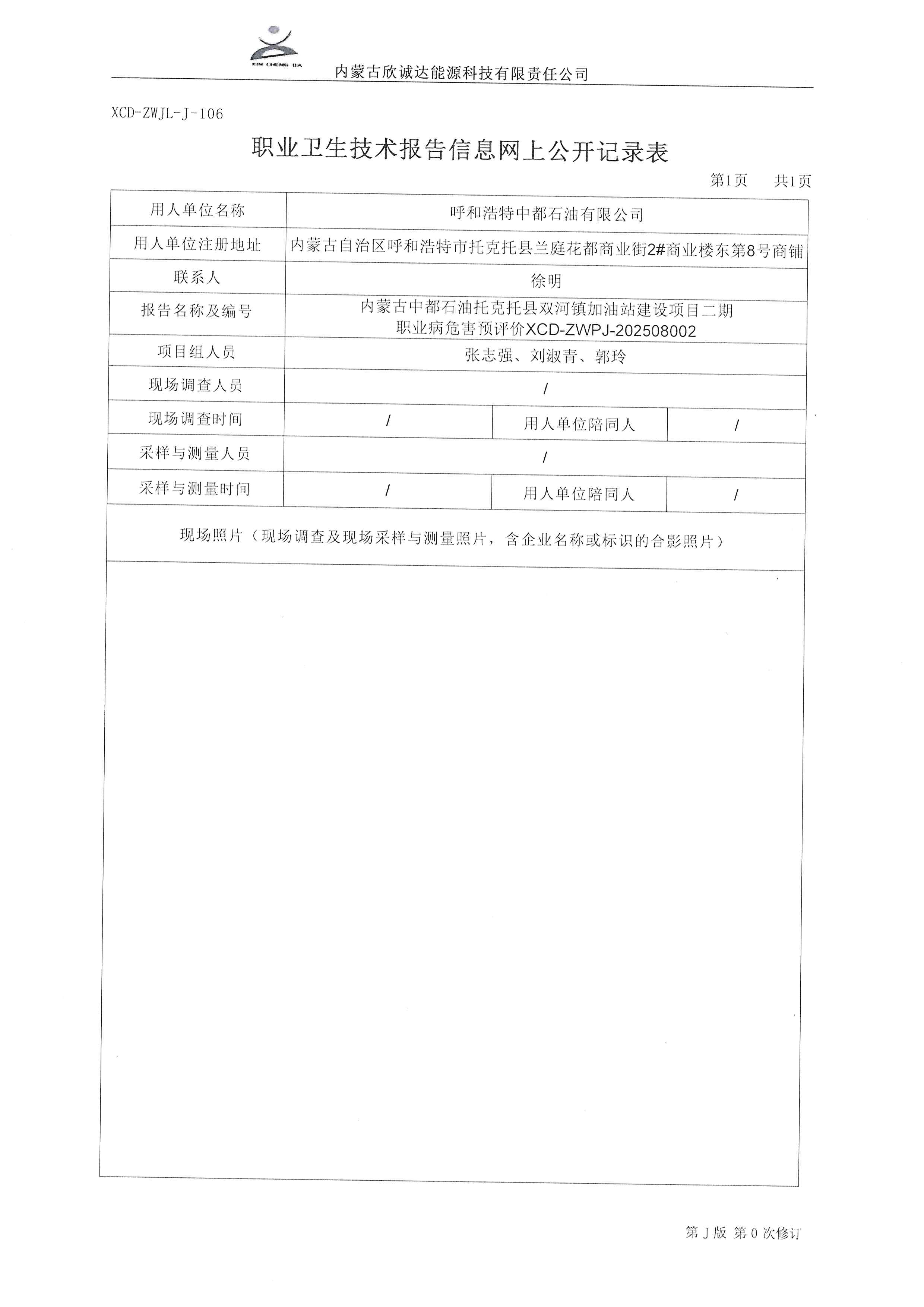 内蒙古中都石油托克托县双河镇加油站建设项目二期职业病危害预评价XCD-ZWPJ-202508002