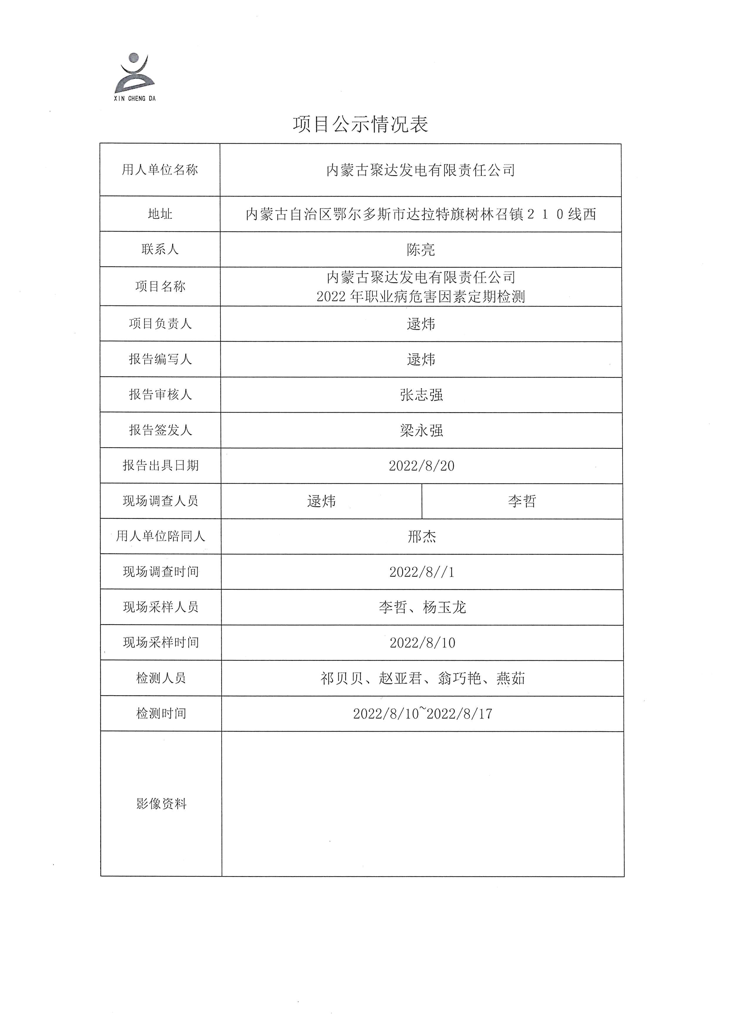 内蒙古聚达发电有限责任公司2022年职业病危害因素定期检测