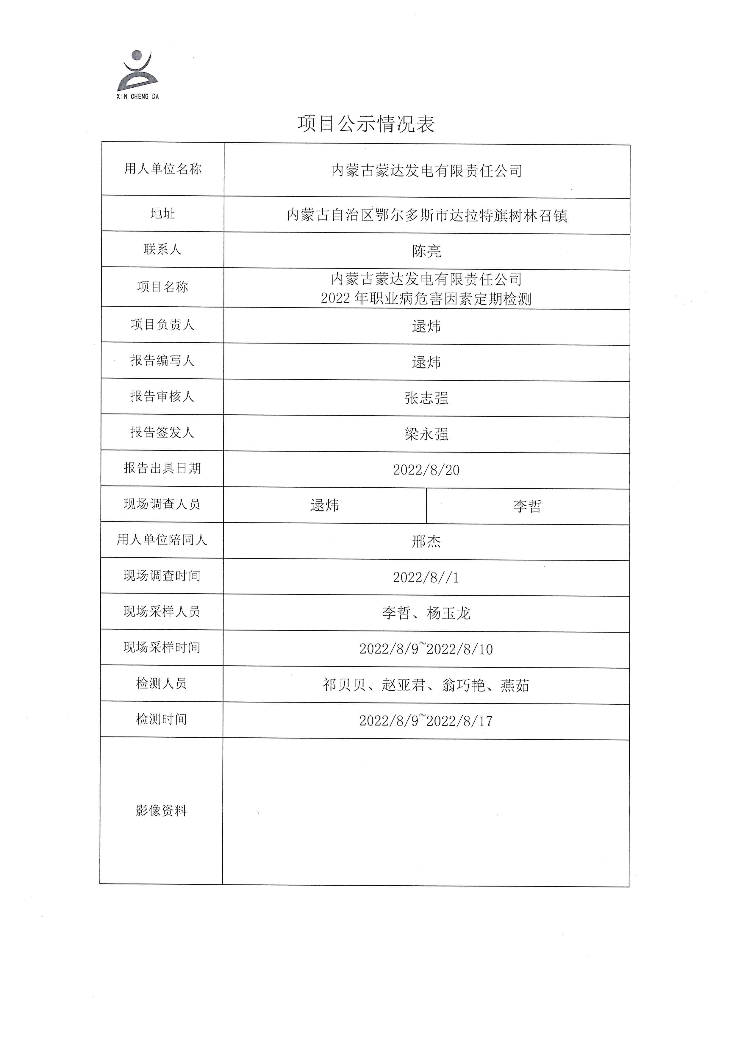 内蒙古蒙达发电有限责任公司2022年职业病危害因素定期检测