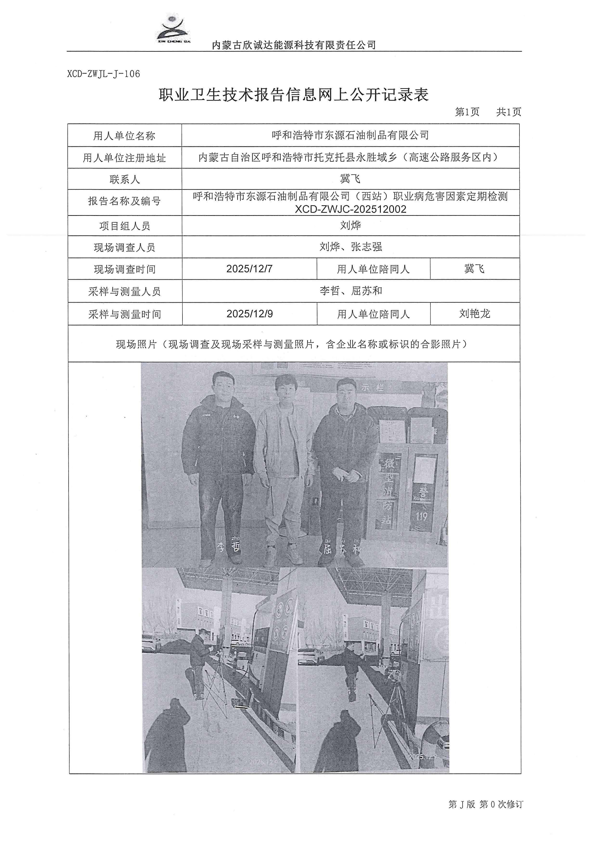 呼和浩特市东源石油制品有限公司(西站)2025年职业病危害因素定期检测XCD-ZWJC-202512002