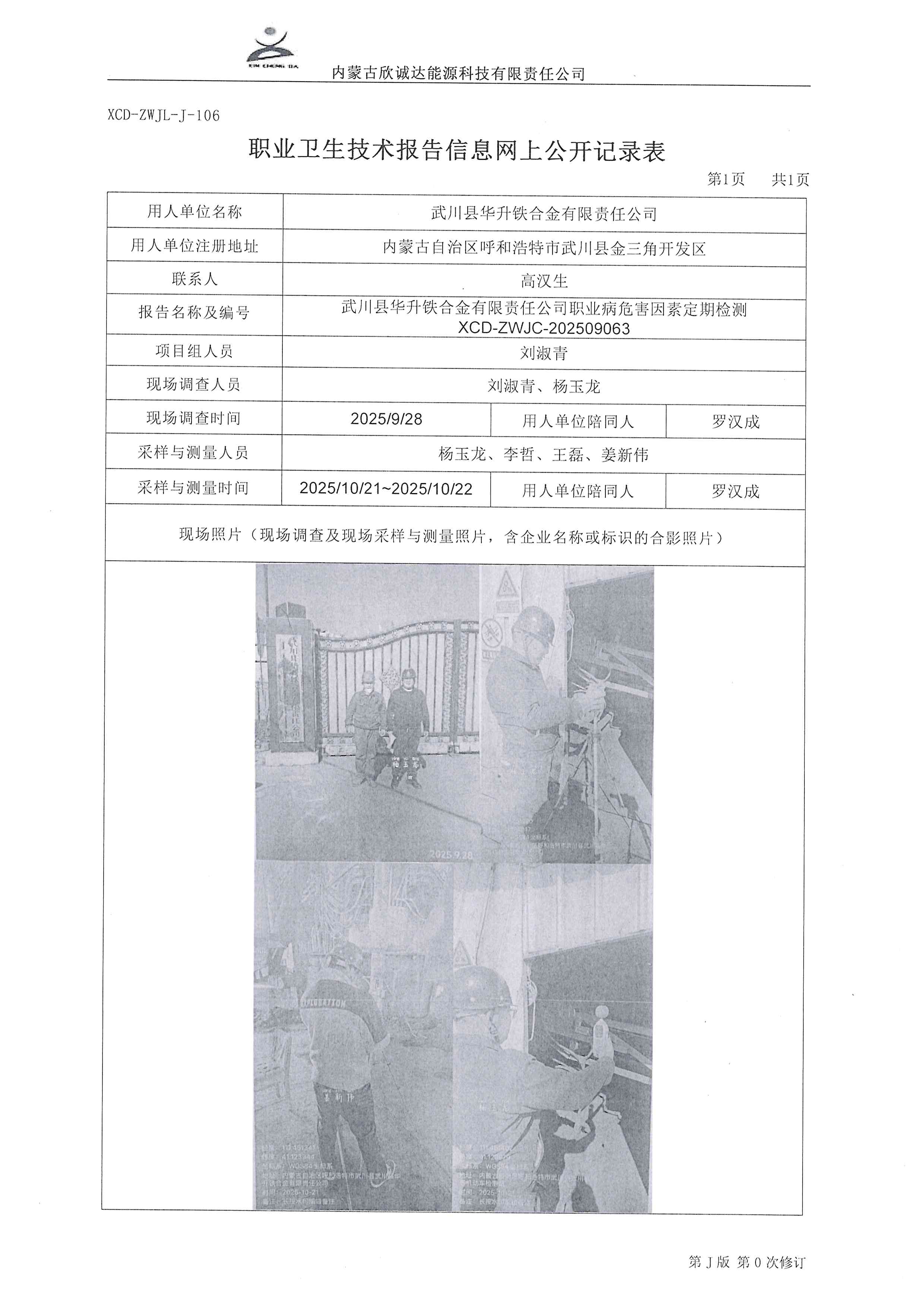 武川县华升铁合金有限责任公司职业病危害因素定期检测XCD-ZWJC-202509063
